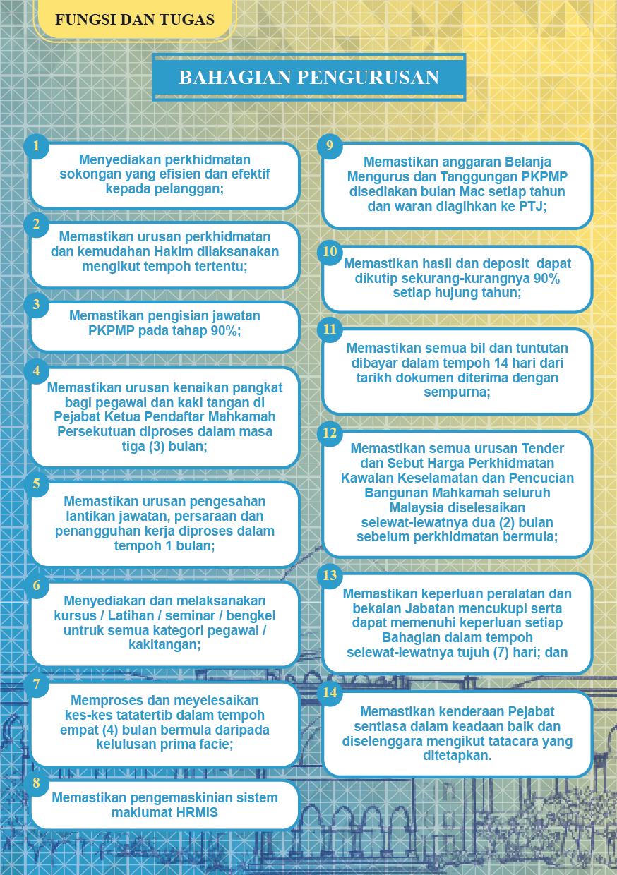 e-Court Division was set-up since January 2013 to implement the e-Court System and to ensure the efficiency of the technical aspects, compliance with laws and court work processes including change of management, so that the implementation of e-Court System meets the requirements of the public and stakeholders.
